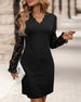 SPECIFIKATIONER Stil: Chic Materiale: 95% polyester, 5% spandex Kjoletype: Tunika Kjolelængde: Knælængde Halsudskæring: V-udskæring Mønstertype: Pailletter, Ensfarvet Ærmetype: Almindeligt ærme Ærmelængde: Langærmet Detaljer: Snøre op Pasform: Almindelig Sæson/årstid: Efterår, Vinter Lejlighed: Daglig, Ferie Pakken inkluderer: 1 x Kjole ST...