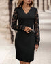 SPECIFIKATIONER Stil: Elegant,Fest Materiale: 50% PU 50% Polyester Kjoletype: A-linje Kjolelængde: Over knæet Halsudskæring: V-udskæring Mønstertype: Ensfarvet Ærmetype: Almindeligt ærme Ærmelængde: Langærmet Detaljer: Snøre op Pasform: Almindelig Sæson/årstid: Forår,Efterår,Vinter Lejlighed: Daglig,Fest Pakken inkluderer: 1 x Kjole STØRR...
