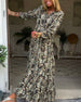 SPECIFIKATIONER Stil: Elegant Materiale: Bomuldsblanding Kjoletype: A-linje Kjolelængde: Maxi Halsudskæring: V-udskæring Mønstertype: Tryk Ærmetype: Almindeligt ærme Ærmelængde: Langærmet Detaljer: Rynket Pasform: Almindelig Sæson/årstid: Forår, Efterår Lejlighed: Daglig, Ferie Pakken inkluderer: 1 x Kjole STØRRELSESTABEL (cm) Størrelse...