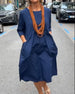 SPECIFIKATIONER Stil: Afslappet Materiale: Bomuldsblanding Kjoletype: A-linje Kjolelængde: Knælængde Halsudskæring: Rund hals Mønstertype: Ensfarvet Ærmetype: Almindeligt ærme Ærmelængde: Trekvartærmet Pasform: Almindelig Sæson/årstid: Forår, Efterår Lejlighed: Daglig Pakken inkluderer: 1 x Kjole STØRRELSESTABEL (cm) Størrelse Buste Læn...