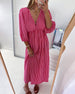SPECIFIKATIONER Stil: Afslappet Materiale: Bomuldsblanding Kjoletype: A-linje Kjolelængde: Maxi Halsudskæring: V-udskæring Mønstertype: Stribet Ærmetype: Almindeligt ærme Ærmelængde: Trekvartærmet Detaljer: Snøre op Pasform: Almindelig Sæson/årstid: Forår,Sommer Lejlighed: Daglig Pakken inkluderer: 1 x Kjole STØRRELSESTABEL (cm) Størrelse Bu...