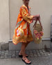 SPECIFIKATIONER Stil: Afslappet Materiale: Bomuldsblanding Kjoletype: A-linje Kjolelængde: Knælængde Halsudskæring: V-udskæring Mønstertype: Tryk Ærmetype: Almindeligt ærme Ærmelængde: Trekvartærmet Pasform: Almindelig Sæson/årstid: Forår,Sommer Lejlighed: Daglig Pakken inkluderer: 1 x Kjole STØRRELSESTABEL (cm) Størrelse Buste Længde S 97...