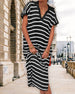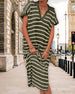 SPECIFIKATIONER Stil: Afslappet Materiale: Bomuld,Polyester Kjoletype: Shift-kjole Kjolelængde: Midi Halsudskæring: Revers Mønstertype: Stribet Ærmetype: Almindeligt ærme Ærmelængde: Kortærmet Detaljer: Flænge Pasform: Almindelig Sæson/årstid: Forår,Sommer Lejlighed: Daglig Pakken inkluderer: 1 x Kjole STØRRELSESTABEL (cm) Størrelse Sk...