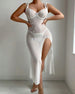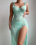 SPECIFIKATIONER Stil: Sexet Materiale: Bomuldsblanding Kjoletype: Bodycon Kjolelængde: Maxi Halsudskæring: V-udskæring Mønstertype: Ensfarvet Ærmelængde: Uden ærmer Detaljer: Høj åbning,Sløjfeknude Pasform: Skinny Sæson/årstid: Forår,Sommer Lejlighed: Daglig Pakken inkluderer: 1 x Trusser,1 x Kjole STØRRELSESTABEL (cm) Størrelse Buste L...