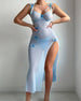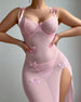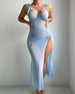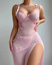 Mesh-Sommerfugl Kjole Med Højt Split Og Bærestropper