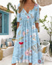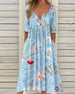 SPECIFIKATIONER Stil: Afslappet Materiale: Bomuldsblanding Kjoletype: A-linje Kjolelængde: Maxi Halsudskæring: V-udskæring Mønstertype: Tryk Ærmetype: Pjuskærmer Ærmelængde: Halve ærmer Pasform: Almindelig Sæson/årstid: Forår,Sommer Lejlighed: Daglig Pakken inkluderer: 1 x Kjole STØRRELSESTABEL (cm) Størrelse Buste Længde S 97 132 M 101 ...