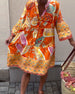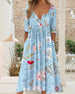 SPECIFIKATIONER Stil: Afslappet Materiale: Bomuldsblanding Kjoletype: A-linje Kjolelængde: Maxi Halsudskæring: V-udskæring Mønstertype: Tryk Ærmetype: Drop Shoulder Ærmelængde: Trekvartærmet Detaljer: Knapper Pasform: Almindelig Sæson/årstid: Forår,Sommer Lejlighed: Daglig Pakken inkluderer: 1 x Kjole STØRRELSESTABEL (cm) Størrelse Buste Læn...