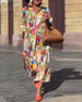 SPECIFIKATIONER Stil: Afslappet Materiale: Bomuldsblanding Kjoletype: A-linje Kjolelængde: Midi Halsudskæring: Rund hals Mønstertype: Tryk Ærmetype: Almindeligt ærme Ærmelængde: Halve ærmer Detaljer: Lomme,Knapper,Rynket Pasform: Almindelig Sæson/årstid: Forår,Sommer Lejlighed: Daglig Pakken inkluderer: 1 x Kjole STØRRELSESTABEL (cm) Størrel...