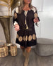 SPECIFIKATIONER Stil: Afslappet Materiale: Bomuldsblanding Kjoletype: A-linje Kjolelængde: Knælængde Halsudskæring: V-udskæring Mønstertype: Ensfarvet Ærmetype: Vidærmet Ærmelængde: Langærmet Detaljer: Patchwork Sæson/årstid: Forår,Sommer,Efterår Lejlighed: Daglig Pakken inkluderer: 1 x Kjole STØRRELSESTABEL (cm) Størrelse Buste Længde S 9...