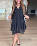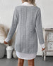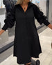 Plus Size Løs Ensfarvet Kjole Med Knapper