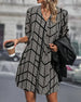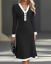 SPECIFIKATIONER Stil: Elegant Materiale: Syntetisk bomuld,Polyester Kjoletype: A-linje Kjolelængde: Midi Halsudskæring: V-udskæring Mønstertype: Farveblok Ærmetype: Almindeligt ærme Ærmelængde: Langærmet Detaljer: Knapper Pasform: Almindelig Sæson/årstid: Forår,Efterår,Vinter Lejlighed: Daglig,Arbejde Pakken inkluderer: 1 x Kjole STØRRELSESTAB...