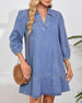 SPECIFIKATIONER Stil: Afslappet Materiale: Denim Kjoletype: Shift-kjole Kjolelængde: Knælængde Halsudskæring: V-udskæring Mønstertype: Ensfarvet Ærmetype: Almindeligt ærme Ærmelængde: Trekvartærmet Pasform: Almindelig Sæson/årstid: Forår,Efterår Lejlighed: Daglig Pakken inkluderer: 1 x Kjole STØRRELSESTABEL (cm) Størrelse Buste Længde ...