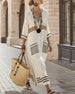 SPECIFIKATIONER Stil: Afslappet Materiale: Bomuldsblanding Kjoletype: A-linje Kjolelængde: Knælængde Halsudskæring: V-udskæring Mønstertype: Stribet Ærmetype: Vidærmet Ærmelængde: Langærmet Pasform: Almindelig Sæson/årstid: Efterår,Vinter Lejlighed: Daglig Pakken inkluderer: 1 x Kjole STØRRELSESTABEL (cm) Størrelse Buste Længde S 97 100 ...