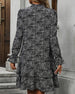 SPECIFIKATIONER Stil: Afslappet Materiale: Bomuldsblanding Kjoletype: A-linje Kjolelængde: Midi Halsudskæring: Krave Mønstertype: Geometrisk tryk Ærmetype: Almindeligt ærme Ærmelængde: Langærmet Detaljer: Rynket Pasform: Almindelig Sæson/årstid: Forår,Efterår Lejlighed: Daglig Pakken inkluderer: 1 x Kjole STØRRELSESTABEL (cm) Størrelse Buste...