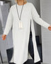 SPECIFIKATIONER Stil: Afslappet Materiale: Bomuldsblanding Kjoletype: Shift-kjole Kjolelængde: Midi Halsudskæring: Rund hals Mønstertype: Ensfarvet Ærmetype: Almindeligt ærme Ærmelængde: Langærmet Detaljer: Lynlås Pasform: Almindelig Sæson/årstid: Efterår,Vinter Lejlighed: Daglig Pakken inkluderer: 1 x Kjole STØRRELSESTABEL (cm) Størrelse Bu...