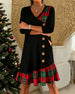 SPECIFIKATIONER Stil: Afslappet Materiale: Bomuldsblanding Kjoletype: A-linje Kjolelængde: Over knæet Halsudskæring: V-udskæring Mønstertype: Julemand,Julevinglas Ærmetype: Almindeligt ærme Ærmelængde: Langærmet Detaljer: Patchwork Pasform: Almindelig Sæson/årstid: Efterår,Vinter Lejlighed: Daglig,Fest Pakken inkluderer: 1 x Kjole STØRRELSESTA...