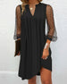 SPECIFIKATIONER Stil: Elegant,Fest Materiale: Bomuldsblanding,Mesh Kjoletype: Shift-kjole Kjolelængde: Knælængde Halsudskæring: V-udskæring Mønstertype: Prikket Ærmetype: Puf-ærmer Ærmelængde: Ni-punkts-ærmer Detaljer: Patchwork,Lomme Pasform: Almindelig Sæson/årstid: Forår,Efterår,Vinter Lejlighed: Daglig Pakken inkluderer: 1 x Kjole STØRRELS...