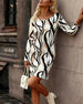 Moderne Langærmet Kjole Med Hunde Tandmønster