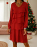 Knappet Kjole Med V-Halsudskæring Og Lange Ærmer