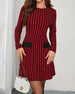Kjole Med Farveblokkdesign, Stikketalj Och Fickegenskab