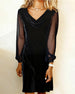 Kjole Med V-Krage Design, Netstof Och Slankende Passform