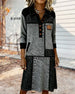 SPECIFIKATIONER Stil: Afslappet Materiale: Bomuldsblanding Kjoletype: Shift-kjole Kjolelængde: Knælængde Halsudskæring: Revers Mønstertype: Farveblok Ærmetype: Almindeligt ærme Ærmelængde: Langærmet Detaljer: Lomme,Knapper Pasform: Almindelig Sæson/årstid: Efterår,Vinter Lejlighed: Daglig Pakken inkluderer: 1 x Kjole STØRRELSESTABEL (cm) Stø...