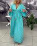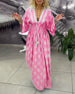 SPECIFIKATIONER Stil: Afslappet Materiale: Bomuldsblanding Kjoletype: A-linje Kjolelængde: Maxi Halsudskæring: V-udskæring Mønstertype: Tryk Ærmetype: Almindeligt ærme Ærmelængde: Trekvartærmet Detaljer: Snøre op,Flænge Pasform: Løs Sæson/årstid: Forår,Sommer,Efterår,Vinter Pakken inkluderer: 1 x tildækning (med bælte) STØRRELSESTABEL (cm)...