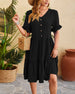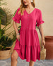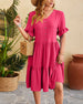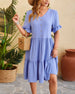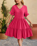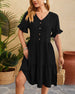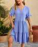 SPECIFIKATIONER Stil: Elegant Materiale: Bomuldsblanding Kjoletype: A-linje Kjolelængde: Knælængde Halsudskæring: V-udskæring Mønstertype: Ensfarvet Ærmetype: Almindeligt ærme Ærmelængde: Kortærmet Detaljer: Knapper, Pjusket Pasform: Almindelig Sæson/årstid: Forår, Sommer Lejlighed: Daglig Pakken inkluderer: 1 x Kjole STØRRELSESTABEL (cm) ...