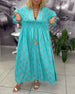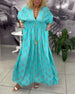 SPECIFIKATIONER Stil: Afslappet Materiale: Bomuldsblanding Kjoletype: A-linje Kjolelængde: Maxi Halsudskæring: V-udskæring Mønstertype: Tryk Ærmetype: Almindeligt ærme Ærmelængde: Kortærmet Pasform: Almindelig Sæson/årstid: Forår,Sommer Lejlighed: Daglig Pakken inkluderer: 1 x Kjole STØRRELSESTABEL (cm) Størrelse Buste Længde S 95 130 M ...