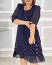 SPECIFIKATIONER Stil: Elegant Materiale: Chiffon,Polyester Kjoletype: A-linje Kjolelængde: Knælængde Halsudskæring: U-udskæring Mønstertype: Prikket Ærmetype: Almindeligt ærme Ærmelængde: Halve ærmer Detaljer: Patchwork Pasform: Almindelig Sæson/årstid: Forår, Sommer, Efterår Lejlighed: Daglig Pakken inkluderer: 1 x Kjole STØRRELSESTABEL ...
