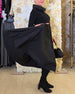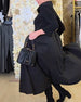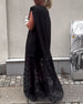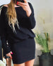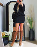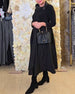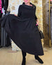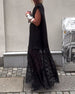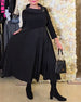 Stilfuld sort kjole med hofteholder og lange ærmer