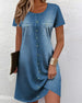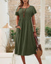 SPECIFIKATIONER Stil: Afslappet Materiale: Bomuldsblanding Kjoletype: Shift-kjole Kjolelængde: Over knæet Halsudskæring: Rund hals Mønstertype: Ensfarvet Ærmetype: Almindeligt ærme Ærmelængde: Kortærmet Detaljer: Knapper Pasform: Almindelig Sæson/årstid: Forår,Sommer Lejlighed: Daglig Pakken inkluderer: 1 x Kjole STØRRELSESTABEL (cm) Stø...