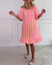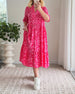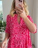 V-halset lyserød kjole med svaj og print
