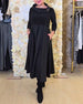 Sort patchwork kjole med rund halsudskæring
