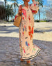 SPECIFIKATIONER Stil: Elegant Materiale: Bomuldsblanding Kjoletype: A-linje Kjolelængde: Maxi Halsudskæring: V-udskæring Mønstertype: Blade Ærmetype: Puf-ærmer Ærmelængde: Kortærmet Detaljer: Rynket Pasform: Almindelig Sæson/årstid: Forår, Sommer Lejlighed: Daglig, Ferie Pakken inkluderer: 1 x Kjole STØRRELSESTABEL (cm) Størrelse Buste Længd...