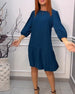 SPECIFIKATIONER Stil: Elegant Materiale: Bomuldsblanding Kjoletype: Shift-kjole Kjolelængde: Knælængde Halsudskæring: Rund hals Mønstertype: Ensfarvet Ærmetype: Puf-ærmer Ærmelængde: Ni-punkts-ærmer Detaljer: Patchwork, Rynket Pasform: Almindelig Sæson/årstid: Forår, Efterår, Vinter Lejlighed: Daglig Pakken inkluderer: 1 x Kjole STØRRELSES...