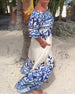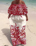 SPECIFIKATIONER Stil: Ferie Materiale: Bomuldsblanding Kjoletype: A-linje Kjolelængde: Maxi Halsudskæring: Off-shoulder Mønstertype: Tryk Ærmetype: Almindeligt ærme Ærmelængde: Kortærmet Pasform: Almindelig Sæson/årstid: Forår,Sommer Lejlighed: Daglig Pakken inkluderer: 1 x Kjole STØRRELSESTABEL (cm) Størrelse Buste Længde S 97 130 M 101...