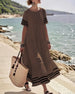 SPECIFIKATIONER Stil: Afslappet, Ferie Materiale: 65% Polyester, 35% Bomuld Kjoletype: A-linje Kjolelængde: Maxi Halsudskæring: Rund hals Ærmetype: Almindeligt ærme Ærmelængde: Halve ærmer Detaljer: Gennemsigtig Pasform: Løs Sæson/årstid: Forår, Sommer, Efterår Lejlighed: Daglig, Ferie, Arbejde Pakken inkluderer: 1 x Kjole STØRRELSESTABEL ...