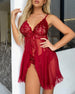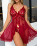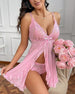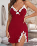 Natkjole Dyb V Sløjfe Slids Strømpeholder
