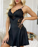 SPECIFIKATIONER Stil: Sexet Materiale: Bomuldsblanding Halsudskæring: Spaghetti-stropper Ærmelængde: Uden ærmer Detaljer: Patchwork,Rygløs,Gennemsigtig Pasform: Almindelig Sæson/årstid: Forår,Sommer,Efterår,Vinter Pakken inkluderer: 1 x Søvn kjole STØRRELSESTABEL (cm) Størrelse Under barmen Længde S 66 75 M 70 76 L 74 77 XL 78 7...