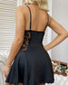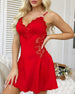 SPECIFIKATIONER Stil: Sexet Materiale: Polyester Kjoletype: A-linje Kjolelængde: Over knæet Halsudskæring: V-udskæring Mønstertype: Ensfarvet Ærmetype: Almindeligt ærme Ærmelængde: Uden ærmer Detaljer: Patchwork,Snøre Pasform: Skinny Sæson/årstid: Forår,Sommer Pakken inkluderer: 1 x Søvn kjole STØRRELSESTABEL (cm) Størrelse Under bar...