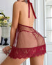 Blomstret Knipling Halter Babydoll Underskjole Med String