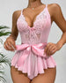 Sløjfedekoreret blondelingeri i ét stykke