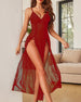 Natkjole Dyb V Sløjfe Slids Strømpeholder