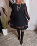 Kjole V-Hals Rufle Ærme Fløjl Glimmer