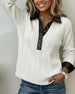 Stilfuld Sweatshirt Med Nedknappet Krave Og Farveblok