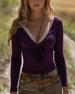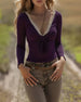Bluse I Enfarvet Patchwork Med V-Halsudskæring