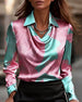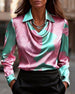 Stilfuld Bluse Med Lange Ærmer Og Satinkrave