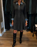 Kjole Med Farveblokeret Lapel Og Lynlås