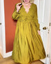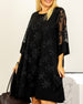 Ensfarvet Broderet Kjole Med Rund Halsudskæring